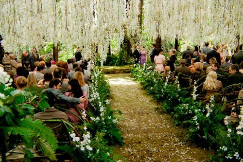 Quang cảnh buổi lễ cưới của chàng ma cà rồng Edward và cô nàng Bella diễn ra trong rừng thật huyền ảo và đáng ước mơ. Bạn có thể sử dụng ý tưởng mang thiên nhiên vào đám cưới của mình bằng việc chọn một cổng hoa thật rực rỡ như trong phim này.