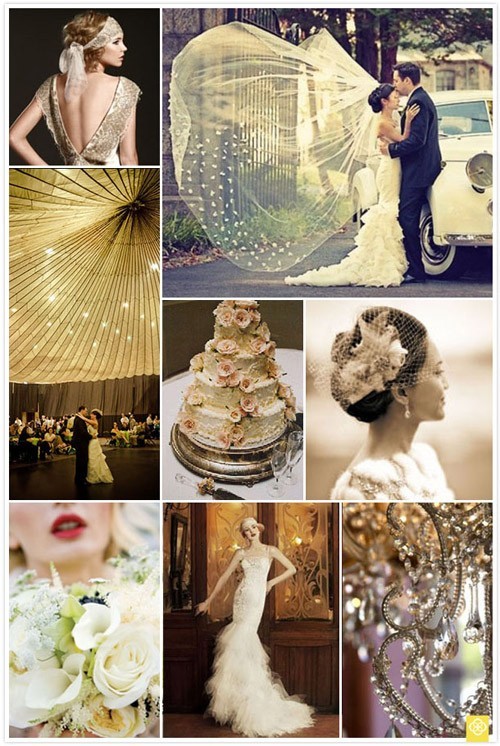 Nếu bạn là fan của The Great Gatsby, những chiếc váy cưới đính sequin lấp lánh, băng đô cài đầu hay mạng che mặt là điểm nhấn tuyệt vời để tạo không khí vàng son, vương giả của bộ phim này.