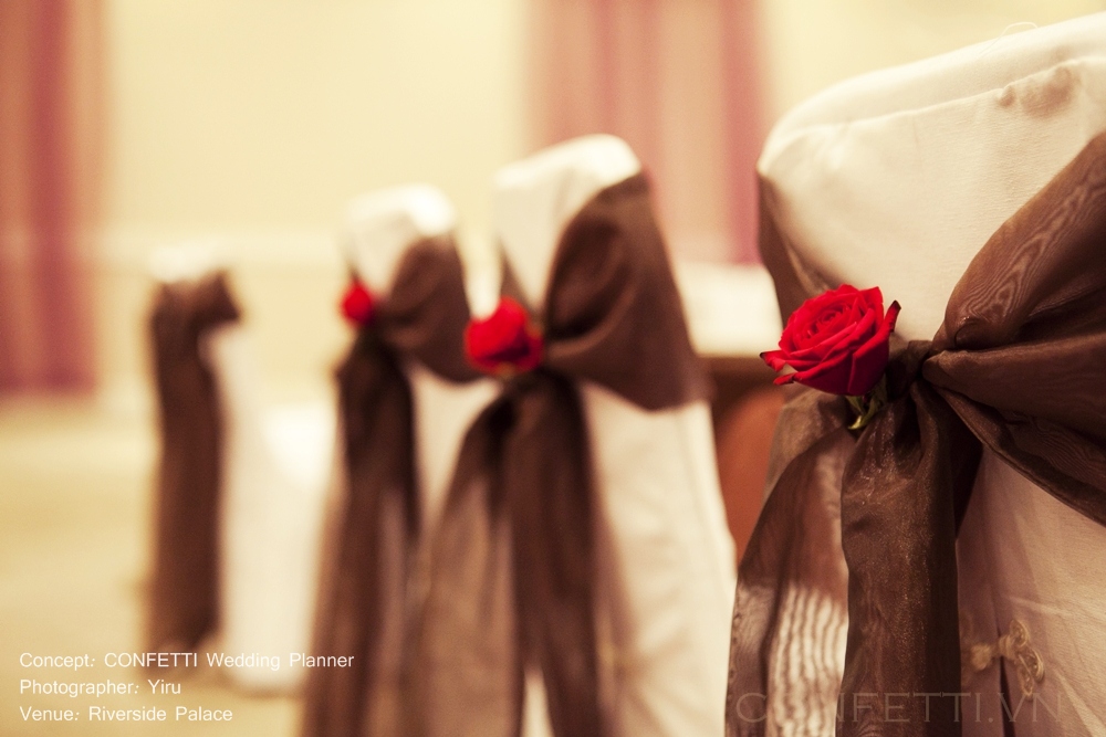 4. Giữ địa điểm và ngày giờ tổ chức trong tâm trí: khi làm việc với những ý tưởng hiện ra liên tục trong đầu, hãy giới hạn chúng bằng việc nghĩ đến không gian thực tế của bạn. Chiếc thảm màu đỏ hay nơ ghế màu hồng đều ảnh hưởng đến những gì mà bạn sẽ lựa chọn.